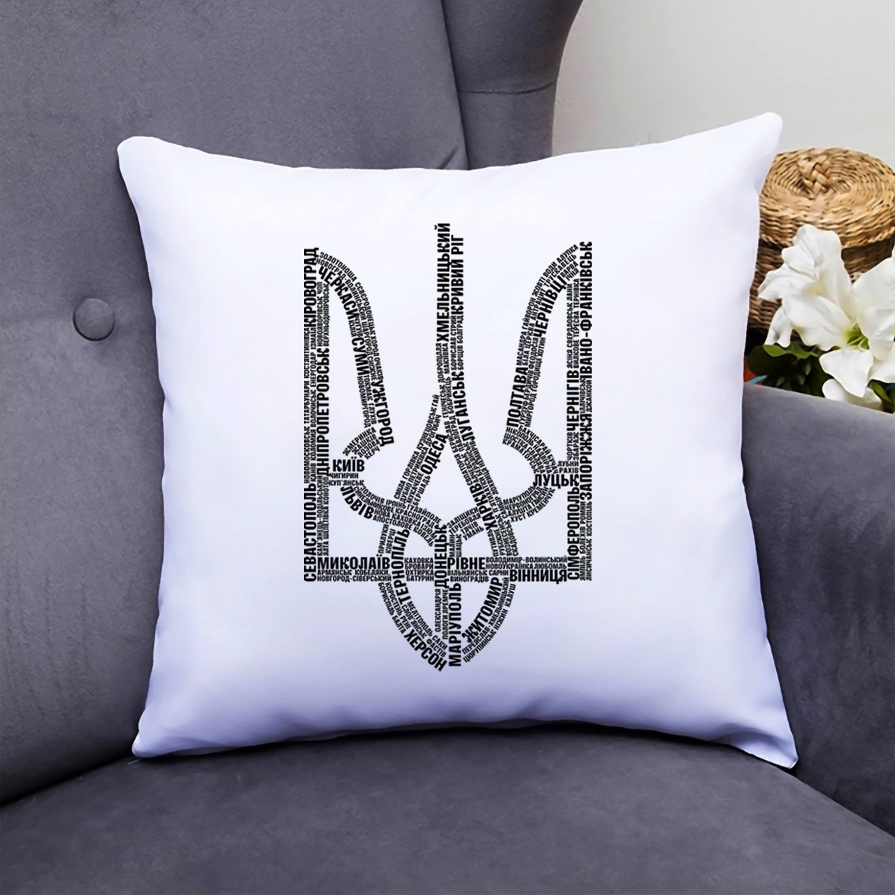 Опис Подушка декоративная с принтом "Герб Украины из названий городов" Push IT Белый Кавун П000539