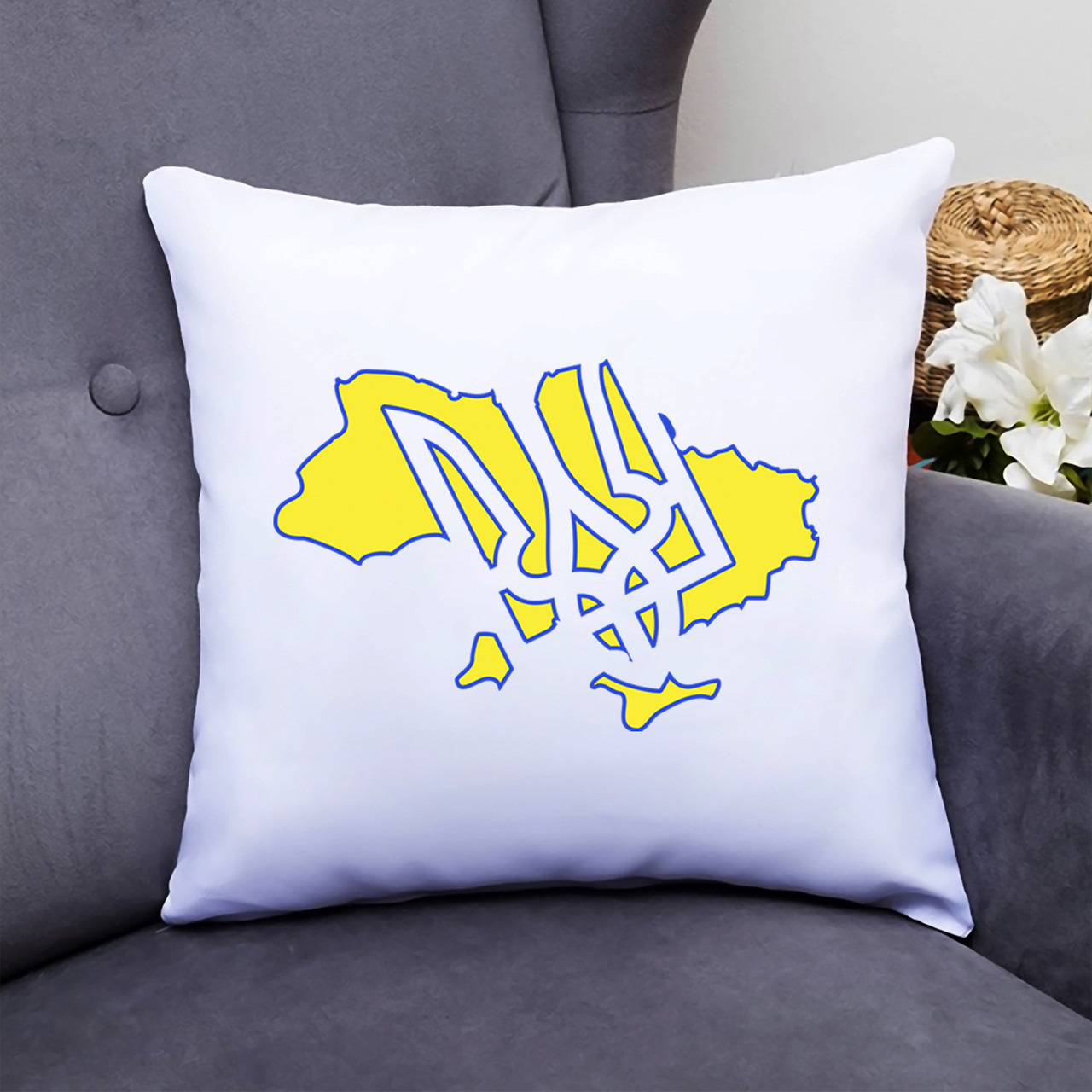 Опис Подушка декоративная с принтом "Желтая карта Украины и Герб страны" Push IT Белый Кавун П000536