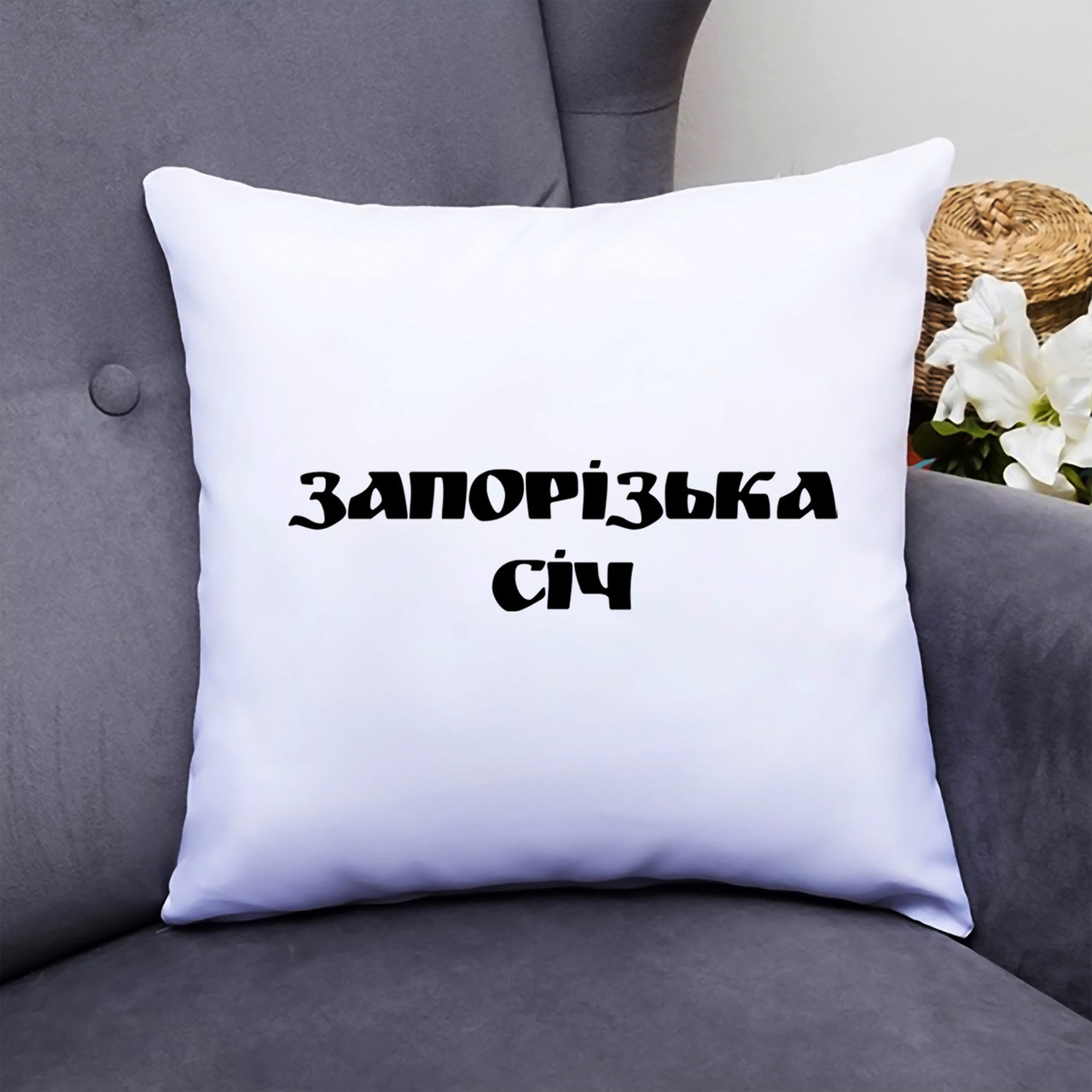 Опис Подушка декоративная с принтом "Запорожская сечь черная надпись" Push IT Белый Кавун П000562