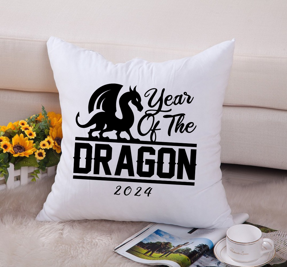 Опис Подушка декоративная с новогодним принтом "Year of the Dragon 2024. Дракон 2024" Push IT Белый Кавун П000712