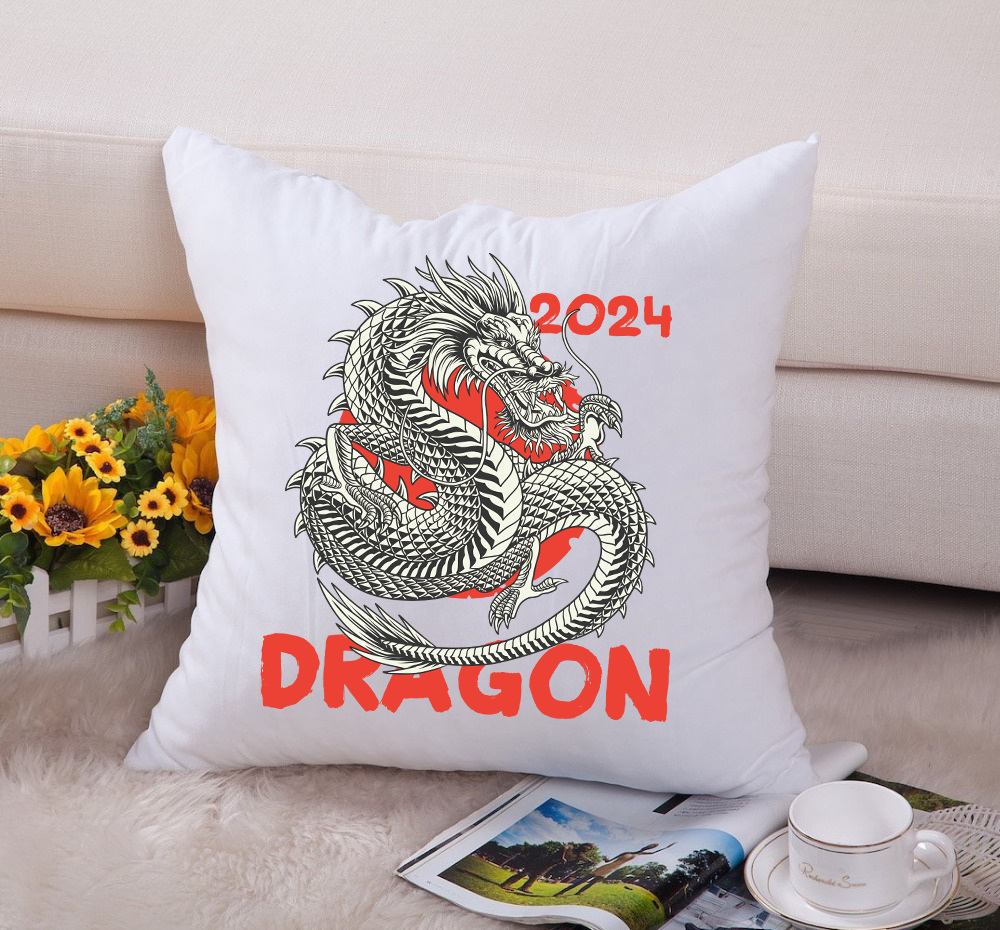 Опис Подушка декоративная с новогодним принтом "Dragon 2024 Дракон 2024" Push IT Белый Кавун П000711