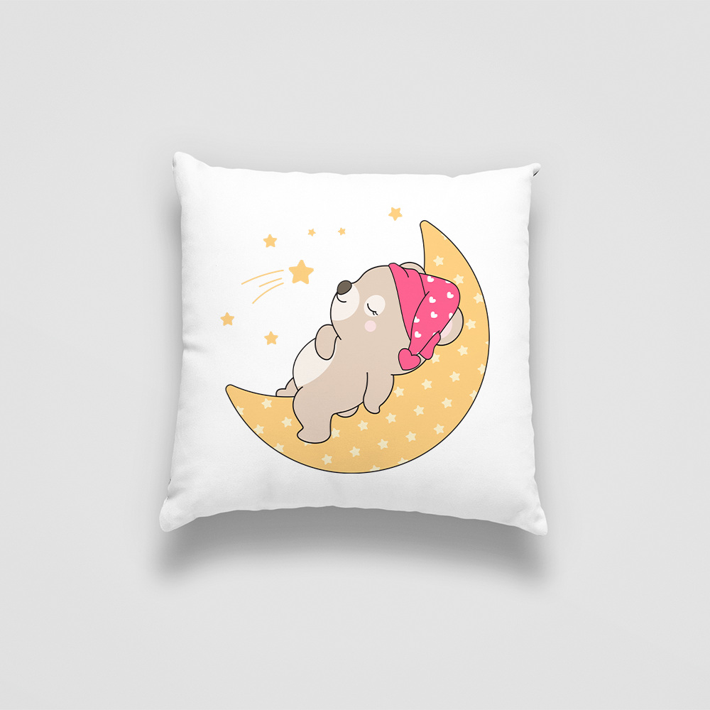 Опис Подушка декоративная с принтом "Спящий мишка на луне. Sleeping bear" Push IT Белый Кавун П000728