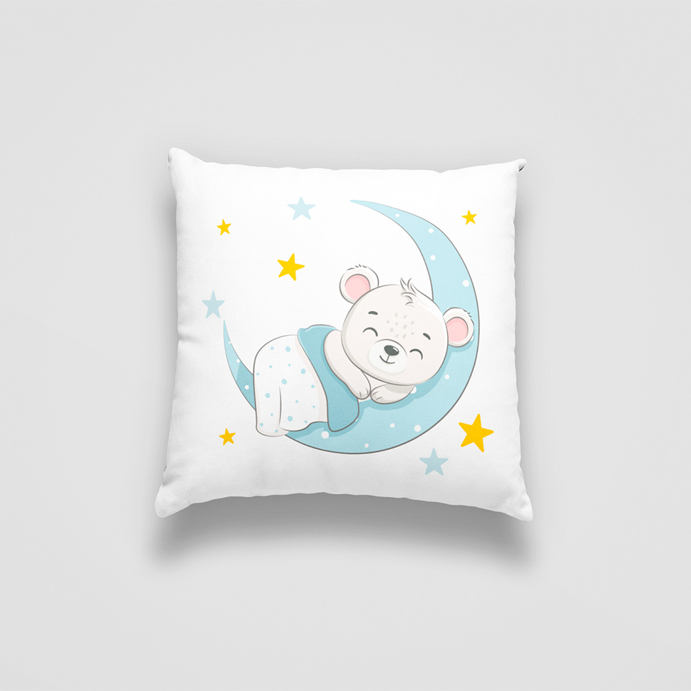 Опис Подушка декоративная с принтом "Спящий белый мишка на месяце. Sleeping bear" Push IT Белый Кавун П000733