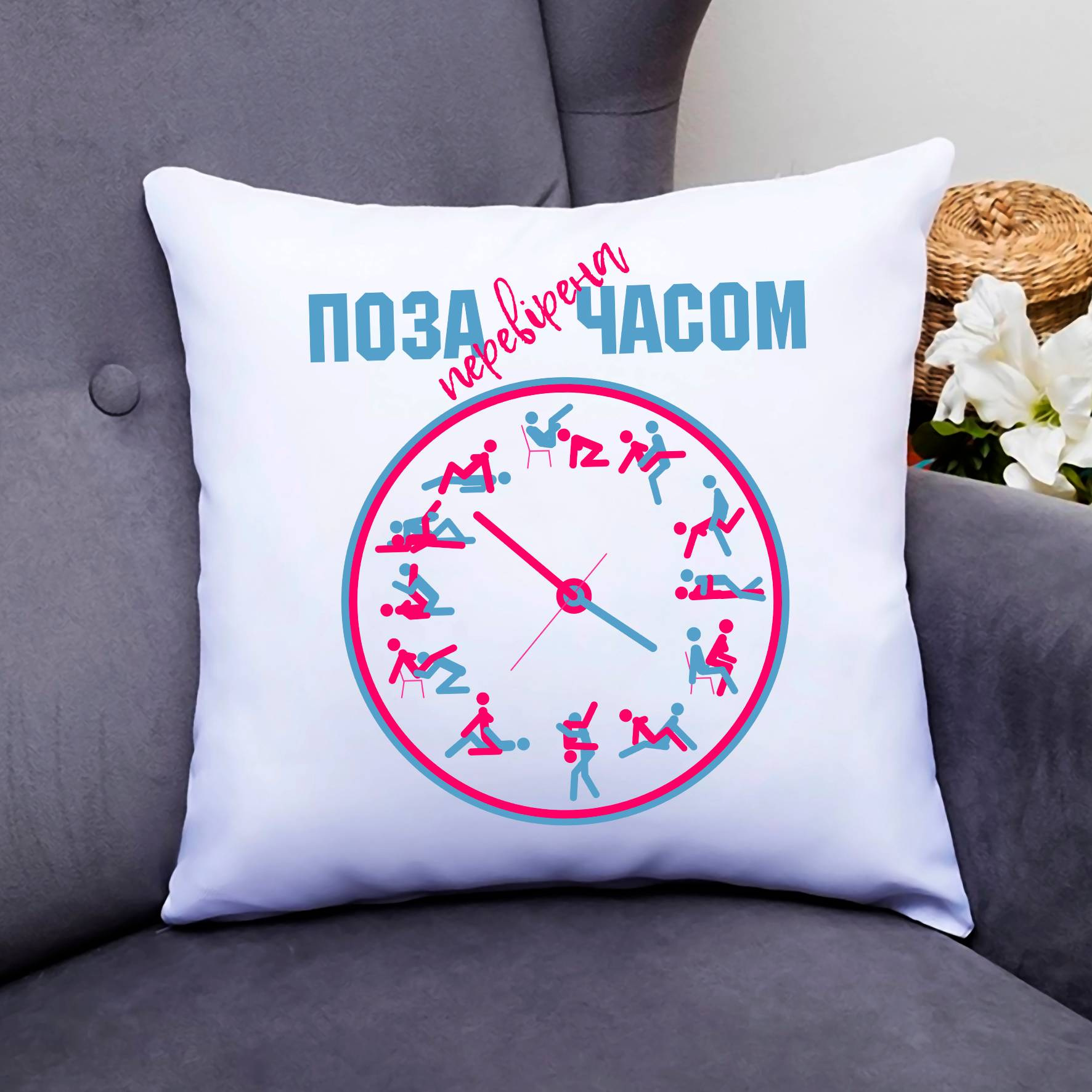 Подушка декоративная с принтом "Поза проверенная временем. Камасутра в часах" Кавун П000753