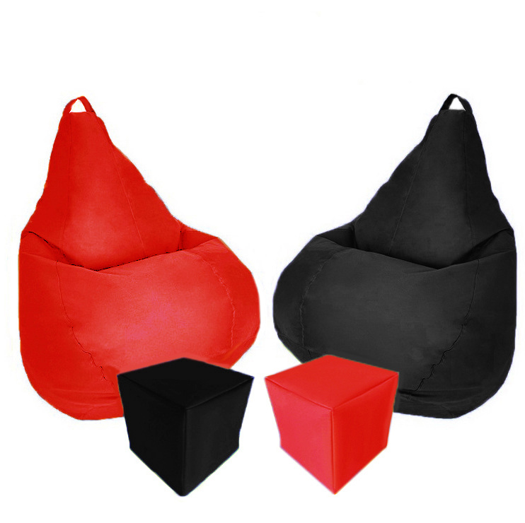 Комплект кресло-мешок груша 120x90 см 2 шт + 2 пуфа 30x30 см Tia-Sport красный/черный (sm-0619-24)