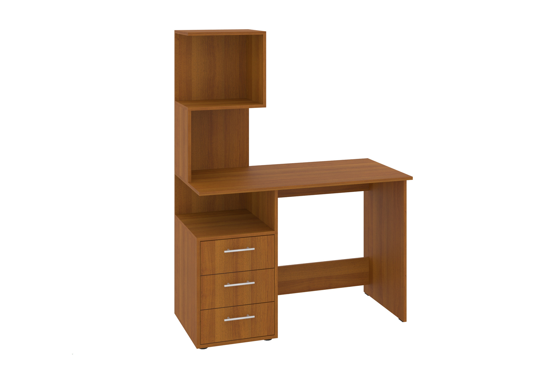 Письмовий стіл із зручним та практичним дизайном, який стане правильним рішенням для вашого робочого простору. Зліва розташовані три шухлядки, що забезпечують достатньо місця для зберігання важливих документів, канцелярського приладдя та інших необхідних речей.