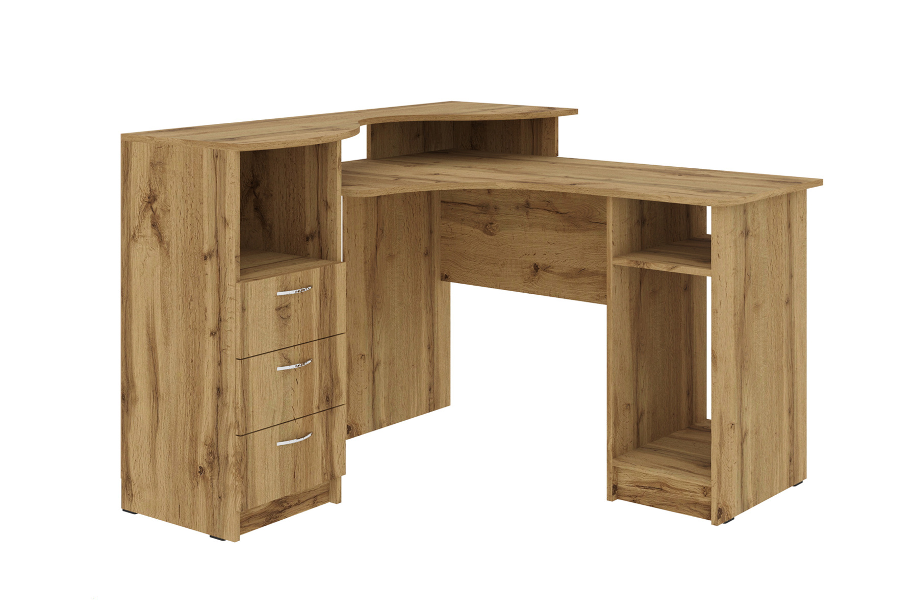 Кутовий комп'ютерний стіл – підходяще рішення для організації робочого простору вдома або в офісі. Стіл оснащений полицею для монітора, яка розташована над стільницею, що дозволяє максимально ефективно використовувати простір і зберігати робочу зону вільною. Під стільницею передбачене спеціальне місце для системного блоку, що забезпечує зручний доступ до нього і водночас зберігає його в безпеці.