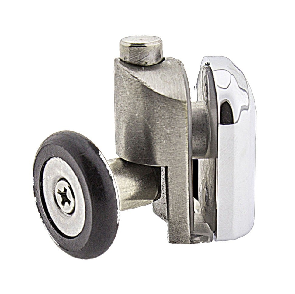 Ролик N-43 (Нижний) для душевой кабины и гидробокса. С диаметром колеса 19, 23, 26, 28 мм. Корпус из нержавеющей стали, все металлические детали изготовлены из нержавеющих материалов. Колесо со специальной подшипником, с металлической сепарацией и пластиковыми шайбами, и водоотталкивающей смазкой. Колесо съемное – крепиться болтом. В комплекте идет хромированная накладка, закрывающая посадочный болт и заднюю часть ролика. Диск нажимной и крепится в нижней части двери и служит крючком для крепления двери в нижней части. Ролики комплектуются по 8 штук на душевую кабину. 4 верхних ( Н-43 С двойной ) и 4 нижних (Н -43 А ).