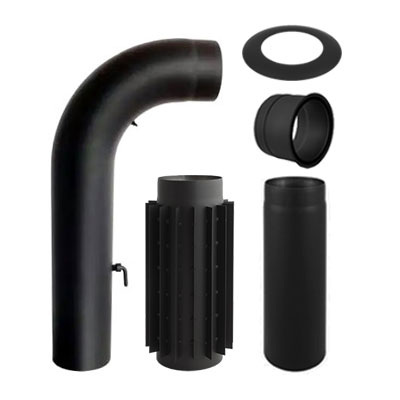 Комплект: 1 х труба-радіатор; 1 х коліно гнуте високе з шибером і ревізією; 1 х труба 0,5 м; 1 х розета декоративна; 1 х компенсаційний перехідник (двостінний)