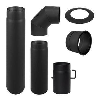 Комплект: 1 х шибер; 1 х труба 1 м; 1 х труба 0,5 м; 1 х коліно 90°; 1 х розета декоративна; 1 х компенсаційний перехідник (двостінний)