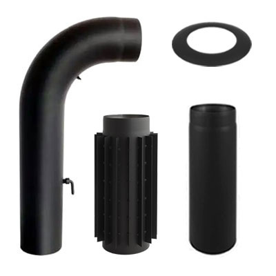 Комплект: 1 х труба-радіатор; 1 х коліно гнуте високе з шибером і ревізією; 1 х труба 0,5 м; 1 х розета декоративна