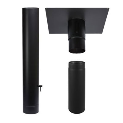 Комплект: 1 х труба з конденсаційним переходом, шибером і ревізією 1 м; 1 х труба 0,5 м; 1 х розета (квадратна)