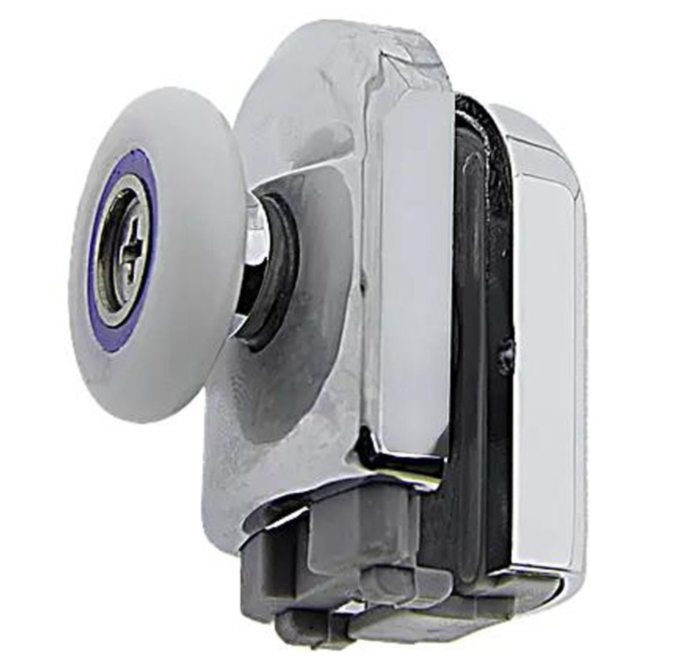 Ставится в нижней части стекла. Задняя часть ролика закрывается декоративным хромированным колпачком. Пружины спрятаны в корпусе ролика. Корпус пластиковый, колесик не поворотный, все металлические детали изготовлены из нержавеющих материалов. Посадочные детали изготовлены из пластика, что предотвращает повреждение стекла при установке ролика. При подборе ролика нужно точно знать внутренний диаметр отверстия в стекле. На данной модели ролика посадочный диаметр составляет 11 мм, под проем в стекле 12 мм.
