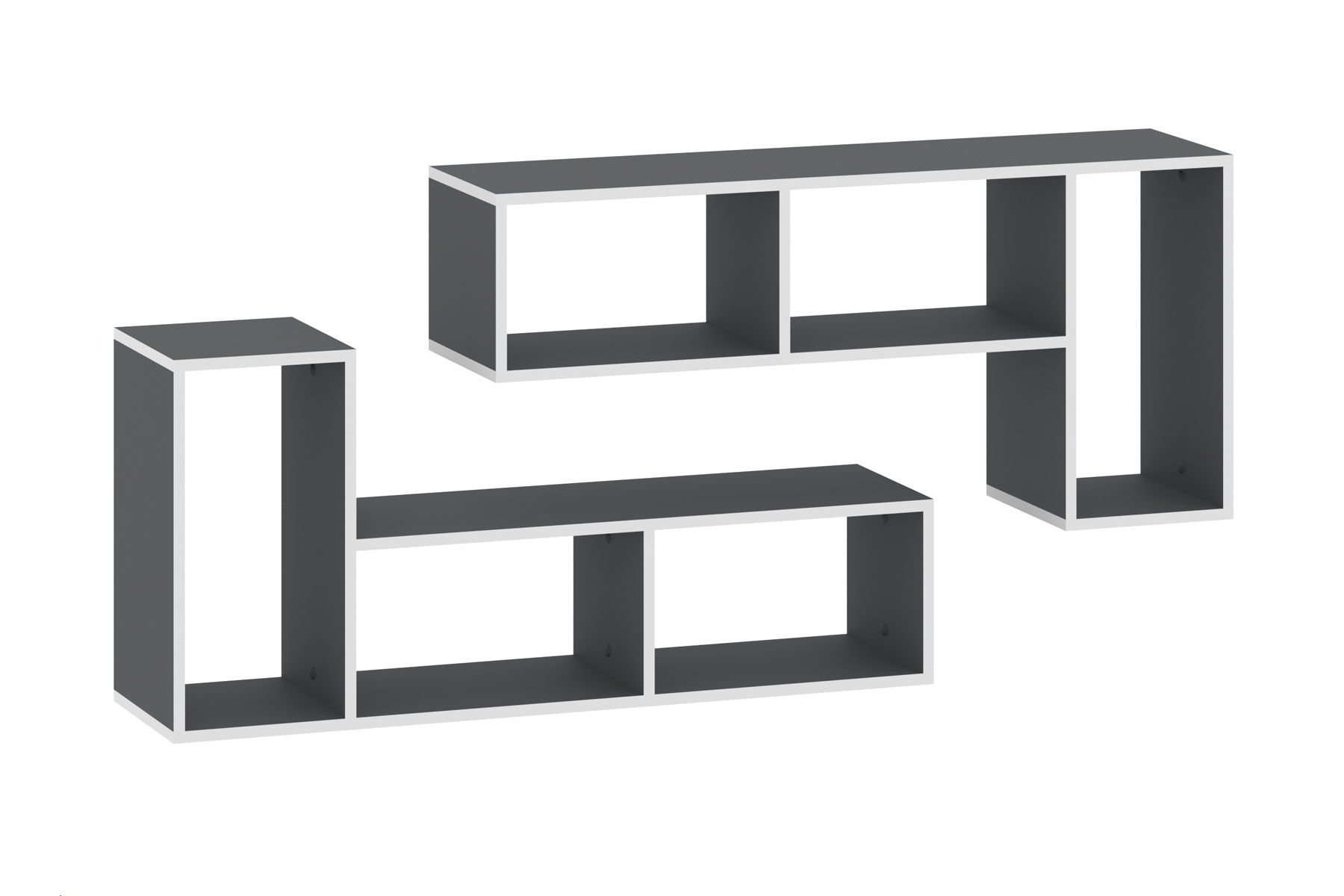 Ви можете експериментувати з розташуванням полиць, комбінуючи їх, подібно варіантам на фото або розміщувати їх окремо, створюючи унікальні рішення для організації простору. Ми також пропонуємо різні поєднання кольорів, що дозволяє вибрати варіант, який ідеально підійде до вашого інтер'єру.