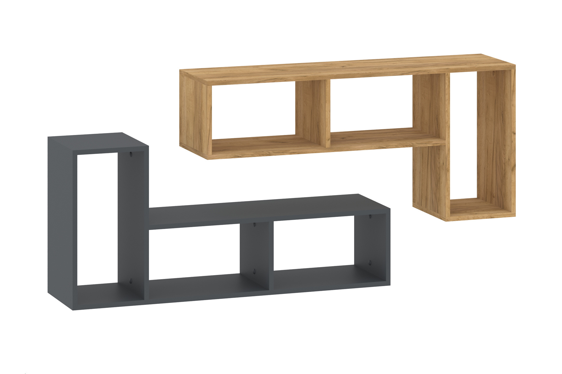 Ви можете експериментувати з розташуванням полиць, комбінуючи їх, подібно варіантам на фото або розміщувати їх окремо, створюючи унікальні рішення для організації простору. Ми також пропонуємо різні поєднання кольорів, що дозволяє вибрати варіант, який ідеально підійде до вашого інтер'єру.