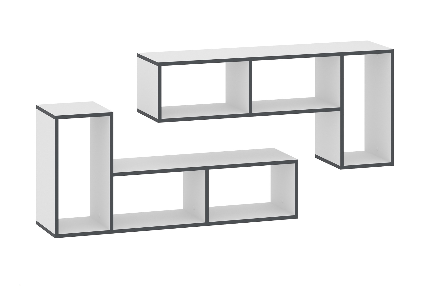 Підлогові полиці, що поставляються в комплекті з двох штук, мають форму літери "Г". Кожна полиця складається з трьох відділів, що дозволяє ефективно використовувати їх для зберігання різноманітних речей. Завдяки своїй формі, ці полиці можуть бути розміщені в різних конфігураціях.