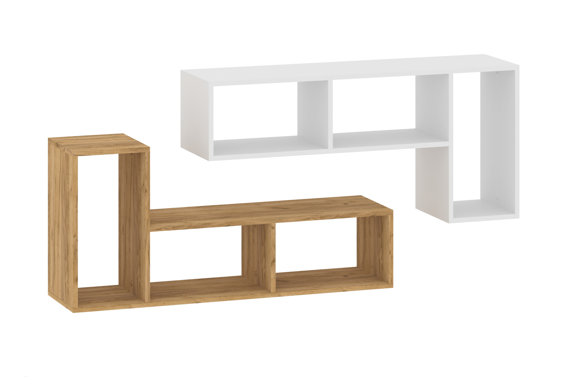 Підлогові полиці, що поставляються в комплекті з двох штук, мають форму літери "Г". Кожна полиця складається з трьох відділів, що дозволяє ефективно використовувати їх для зберігання різноманітних речей. Завдяки своїй формі, ці полиці можуть бути розміщені в різних конфігураціях.