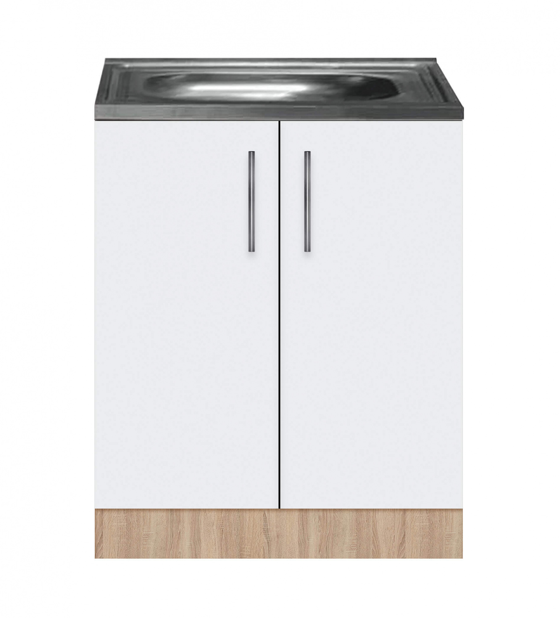 Тумба-мойка укомплектована мойкой из нержавейки без сифона. Толщина металла 0,6 мм.