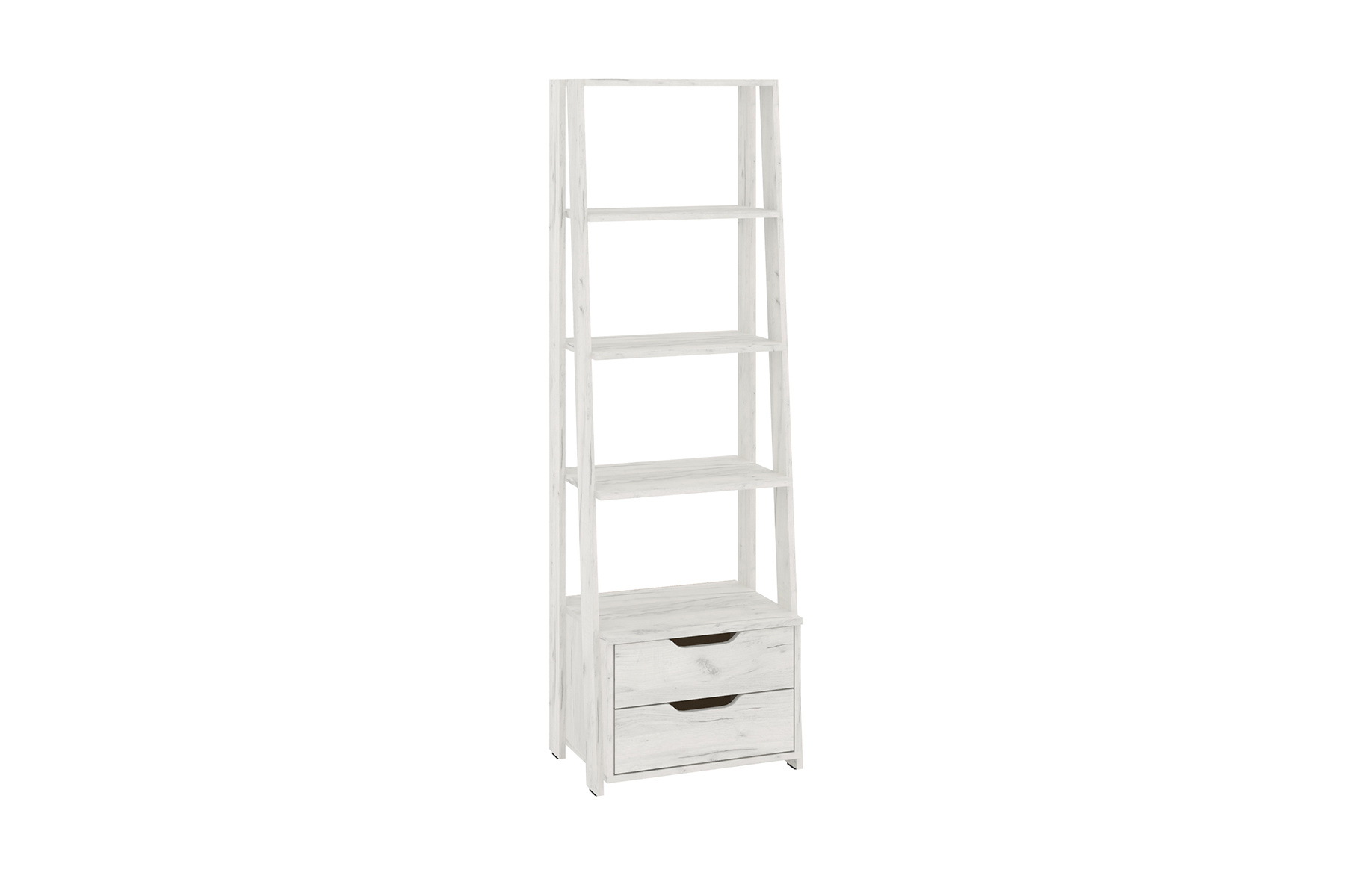 Стелаж оснащений чотирма відкритими полицями, які підходять для розміщення книг, декоративних предметів, рослин чи інших аксесуарів. Нижня частина стелажу містить дві висувні шухляди, які забезпечують додаткове місце для зберігання речей, що повинні залишатися поза увагою.