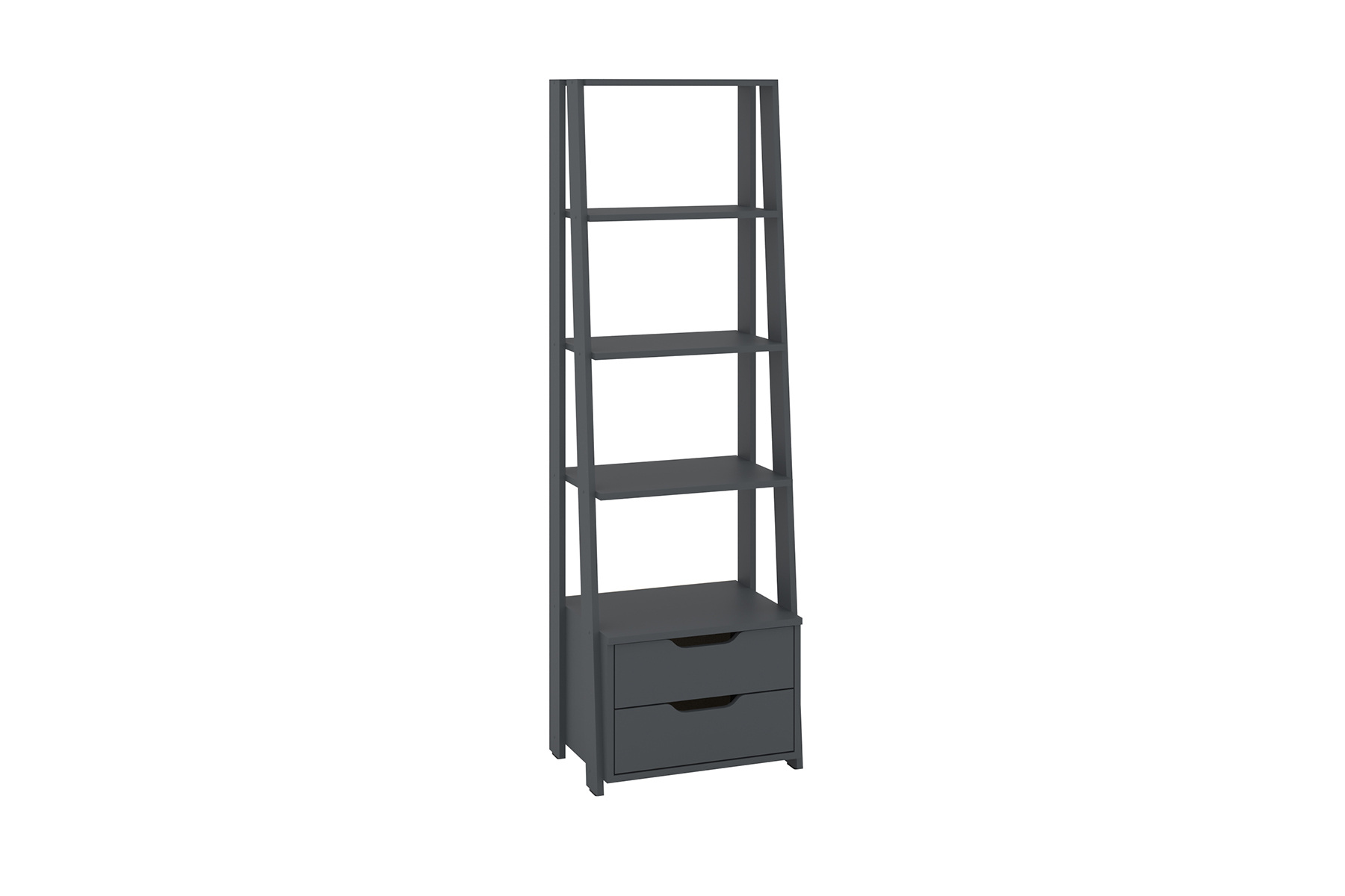 Стелаж оснащений чотирма відкритими полицями, які підходять для розміщення книг, декоративних предметів, рослин чи інших аксесуарів. Нижня частина стелажу містить дві висувні шухляди, які забезпечують додаткове місце для зберігання речей, що повинні залишатися поза увагою.