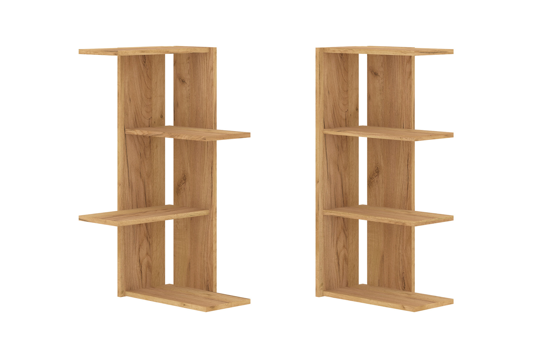 Ця кутова настінна полиця є універсальним рішенням для організації простору, оскільки вона дозволяє власнику вибрати один із кількох варіантів складання. Полиця має декілька рівнів, які можуть бути розташовані в різних комбінаціях залежно від потреб та бажань користувача.