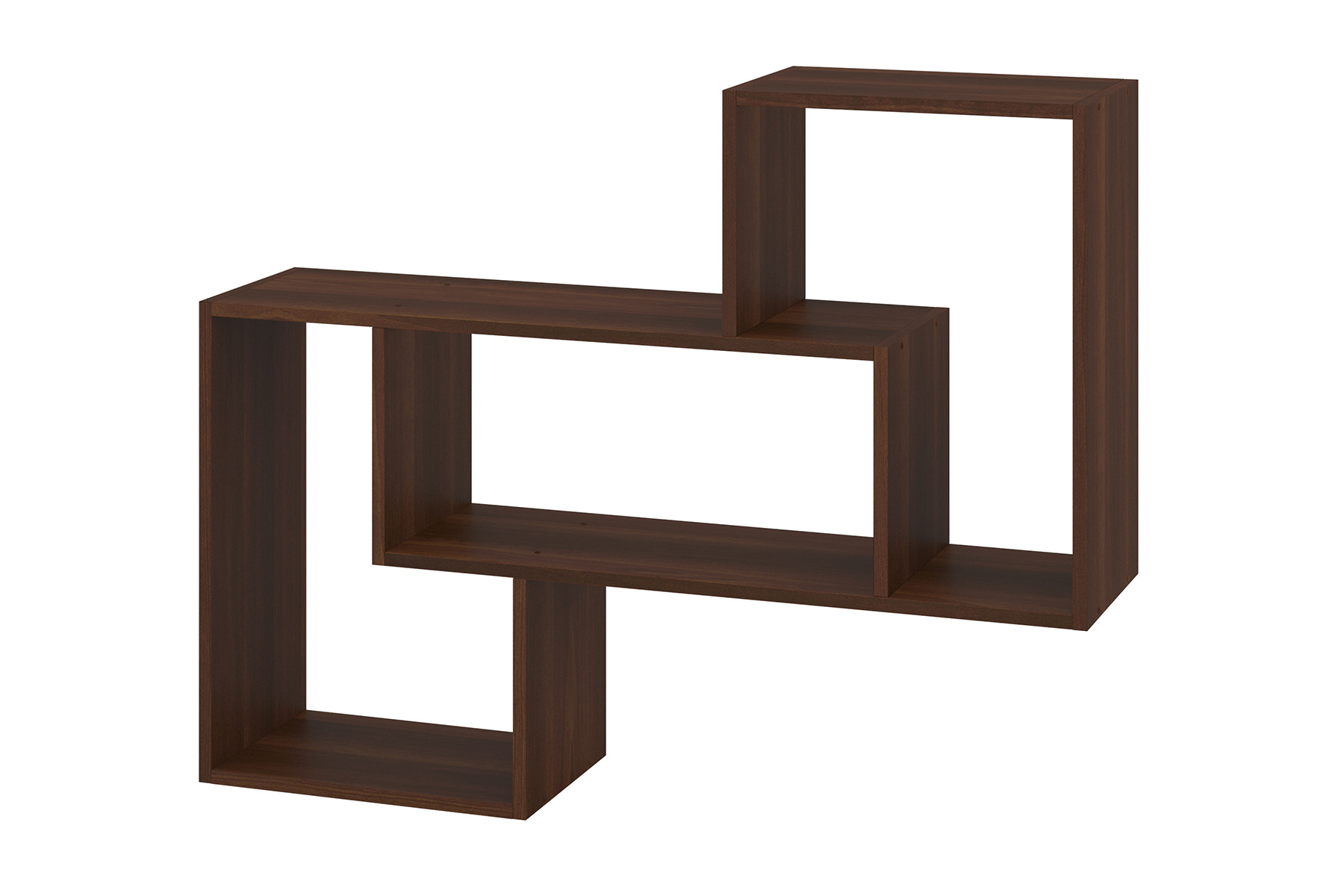 Три відділення розташовані в асиметричному порядку, що створює цікавий візуальний ефект. Подібний варіант настінної полиці приваблює око та дозволяє творчо використати її простір для оздоблення приміщенні різними декоративними елементами.