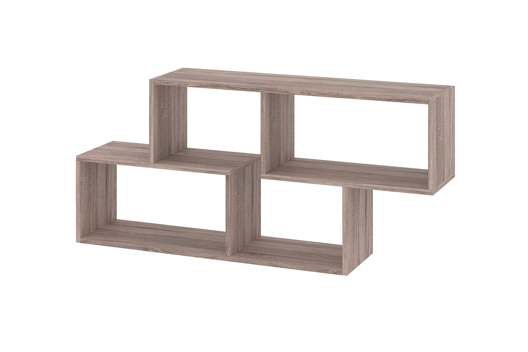 Представлена модель має стильний і сучасний дизайн. Вона складається з трьох секцій, розташованих у цікавій асиметричній формі, що надає їй динамічної естетики. Відділи різного розміру дозволяють зручно розміщувати книги, декоративні предмети, сувеніри або аксесуари.