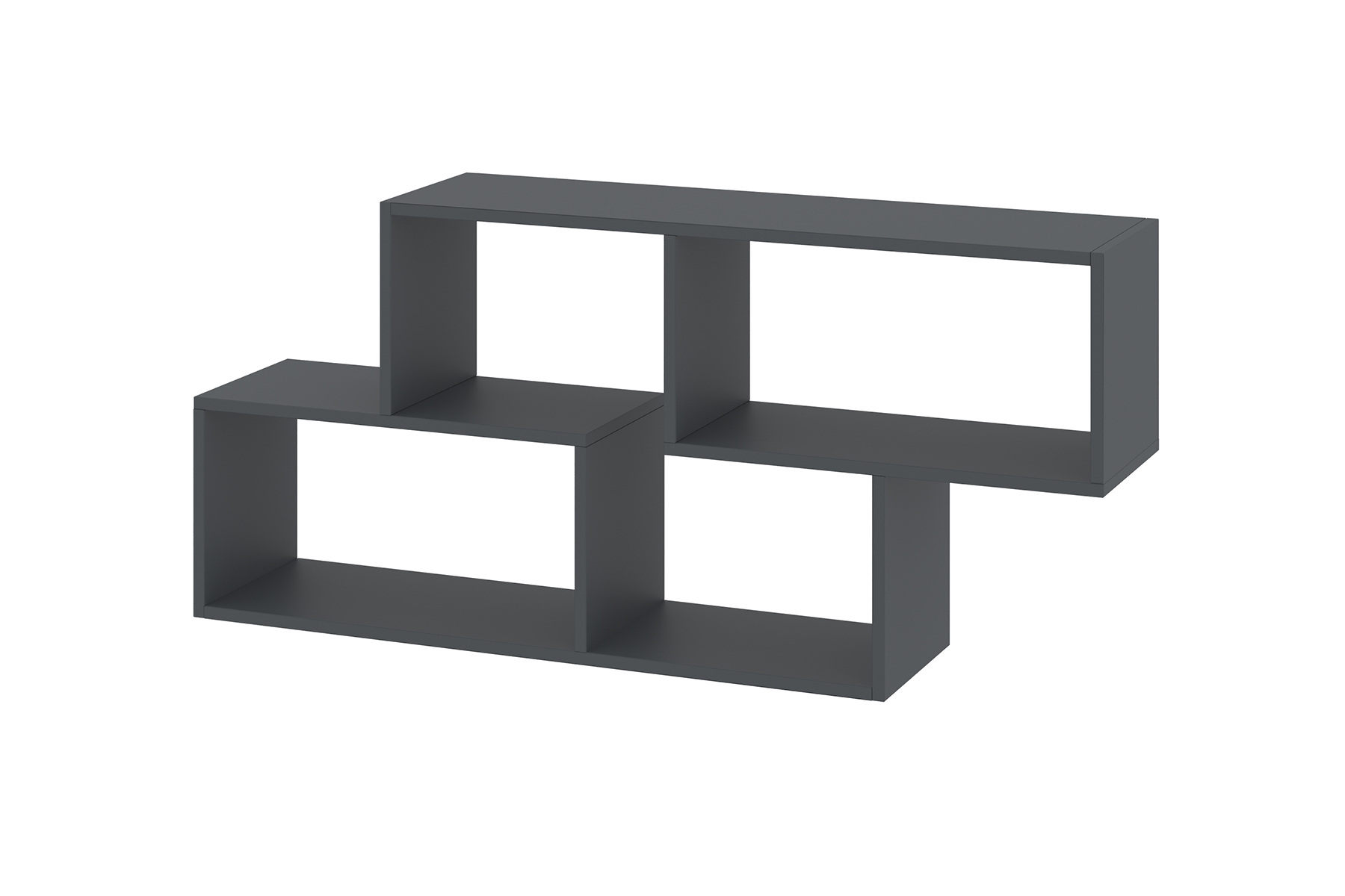Представлена модель має стильний і сучасний дизайн. Вона складається з трьох секцій, розташованих у цікавій асиметричній формі, що надає їй динамічної естетики. Відділи різного розміру дозволяють зручно розміщувати книги, декоративні предмети, сувеніри або аксесуари.