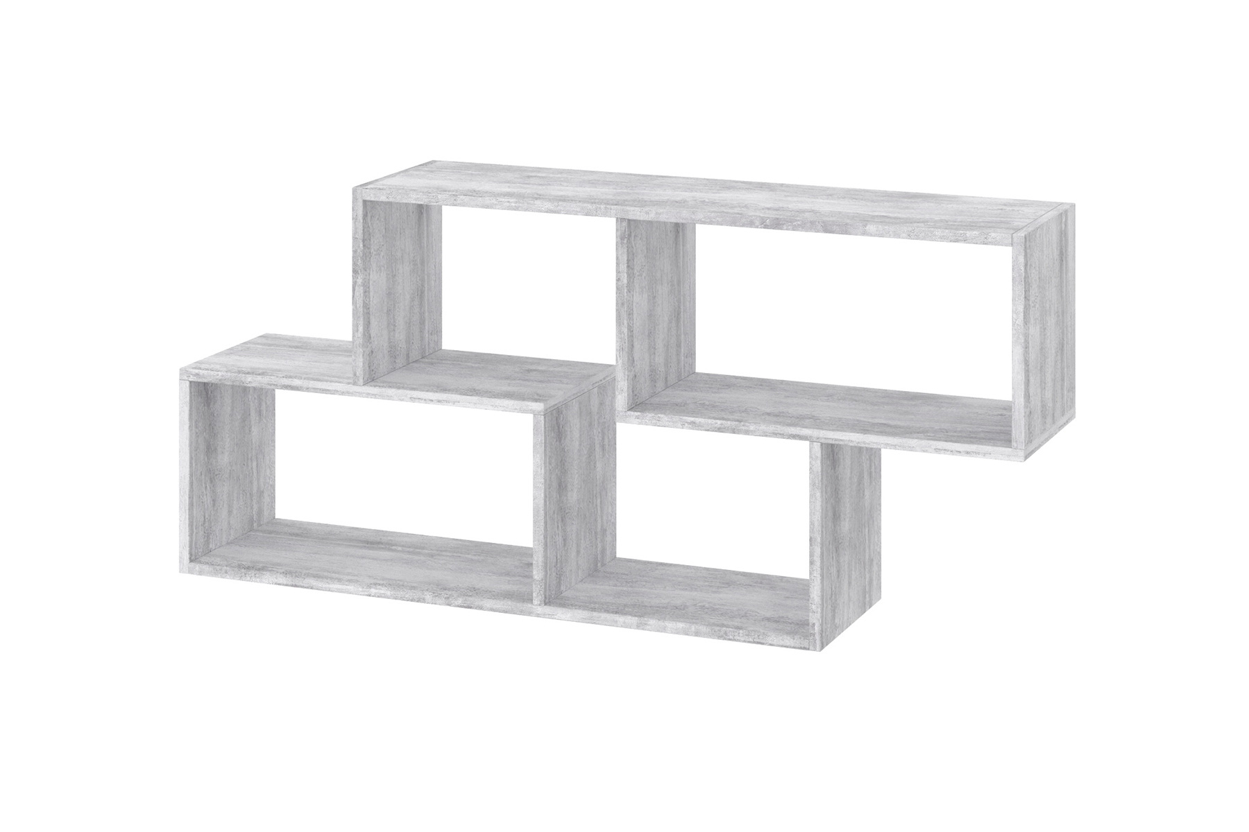 Представлена модель має стильний і сучасний дизайн. Вона складається з трьох секцій, розташованих у цікавій асиметричній формі, що надає їй динамічної естетики. Відділи різного розміру дозволяють зручно розміщувати книги, декоративні предмети, сувеніри або аксесуари.