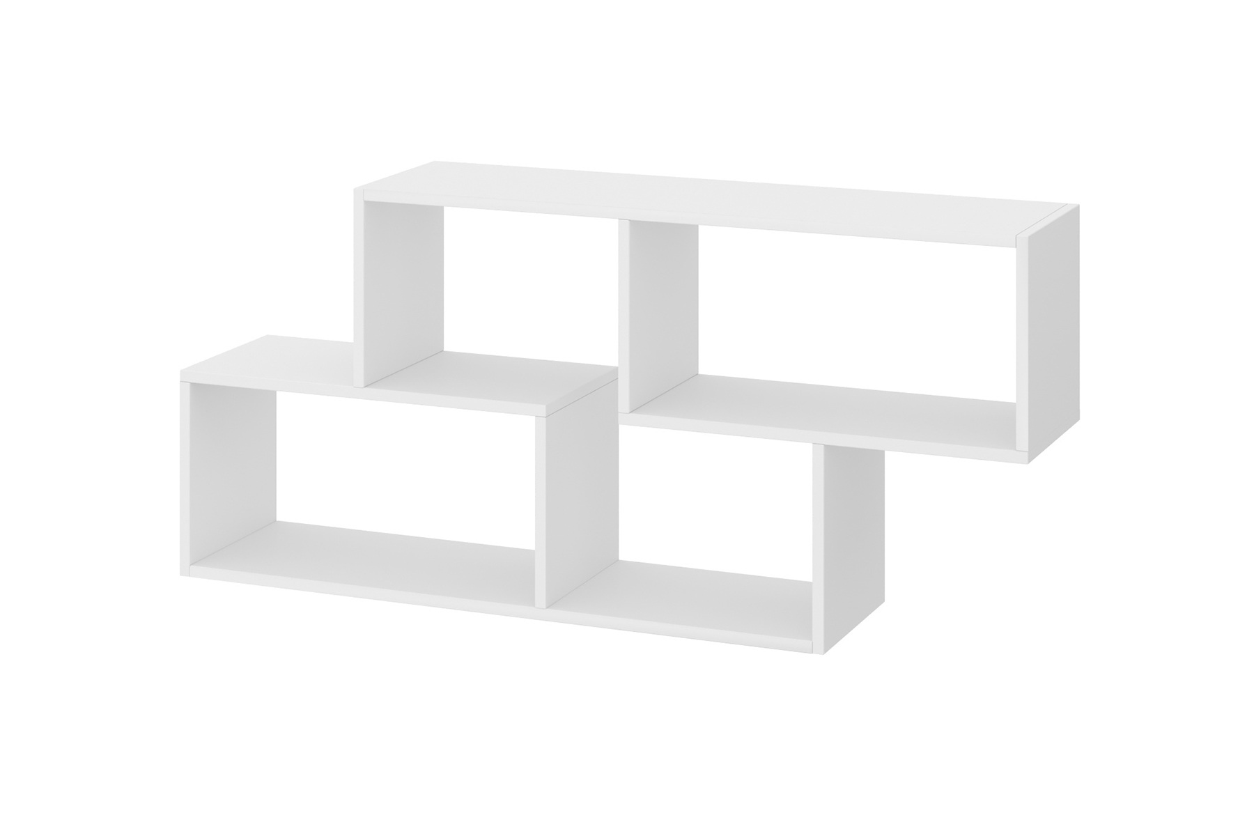 Представлена модель має стильний і сучасний дизайн. Вона складається з трьох секцій, розташованих у цікавій асиметричній формі, що надає їй динамічної естетики. Відділи різного розміру дозволяють зручно розміщувати книги, декоративні предмети, сувеніри або аксесуари.