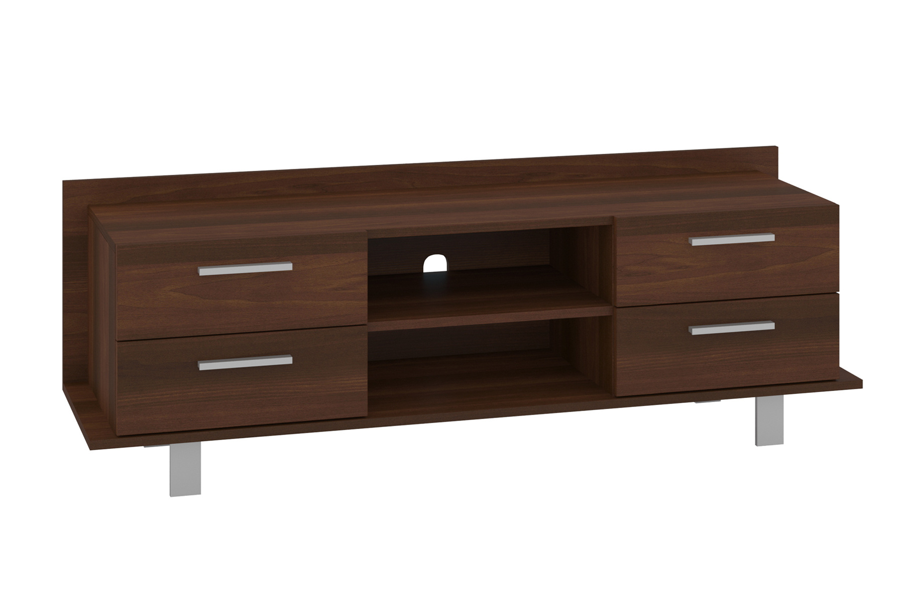 Дана модель найкраще прикрасить вашу спальню чи вітальню. Вона має міцну конструкцію і є простою та достатньо функціональною. Тумба складається з достатньо широкої верхньої поверхні – на ній можна розмістити ТВ. В центральній частині є дві відкриті полиці, а завдяки наявності отвору для кабелів на задній панелі, можна легко організувати дроти, щоб вони не заважали і знаходились в порядку.