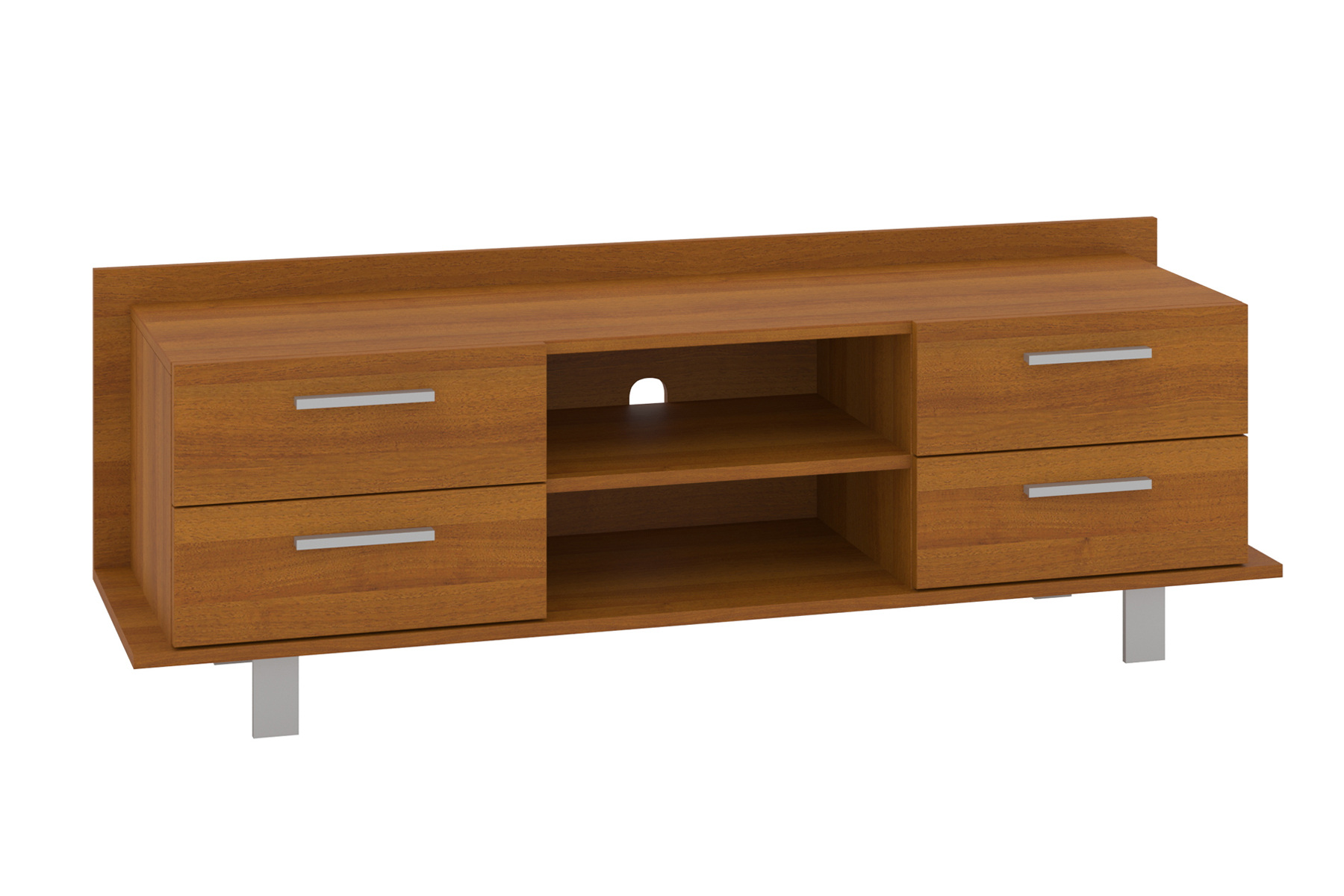 Дана модель найкраще прикрасить вашу спальню чи вітальню. Вона має міцну конструкцію і є простою та достатньо функціональною. Тумба складається з достатньо широкої верхньої поверхні – на ній можна розмістити ТВ. В центральній частині є дві відкриті полиці, а завдяки наявності отвору для кабелів на задній панелі, можна легко організувати дроти, щоб вони не заважали і знаходились в порядку.
