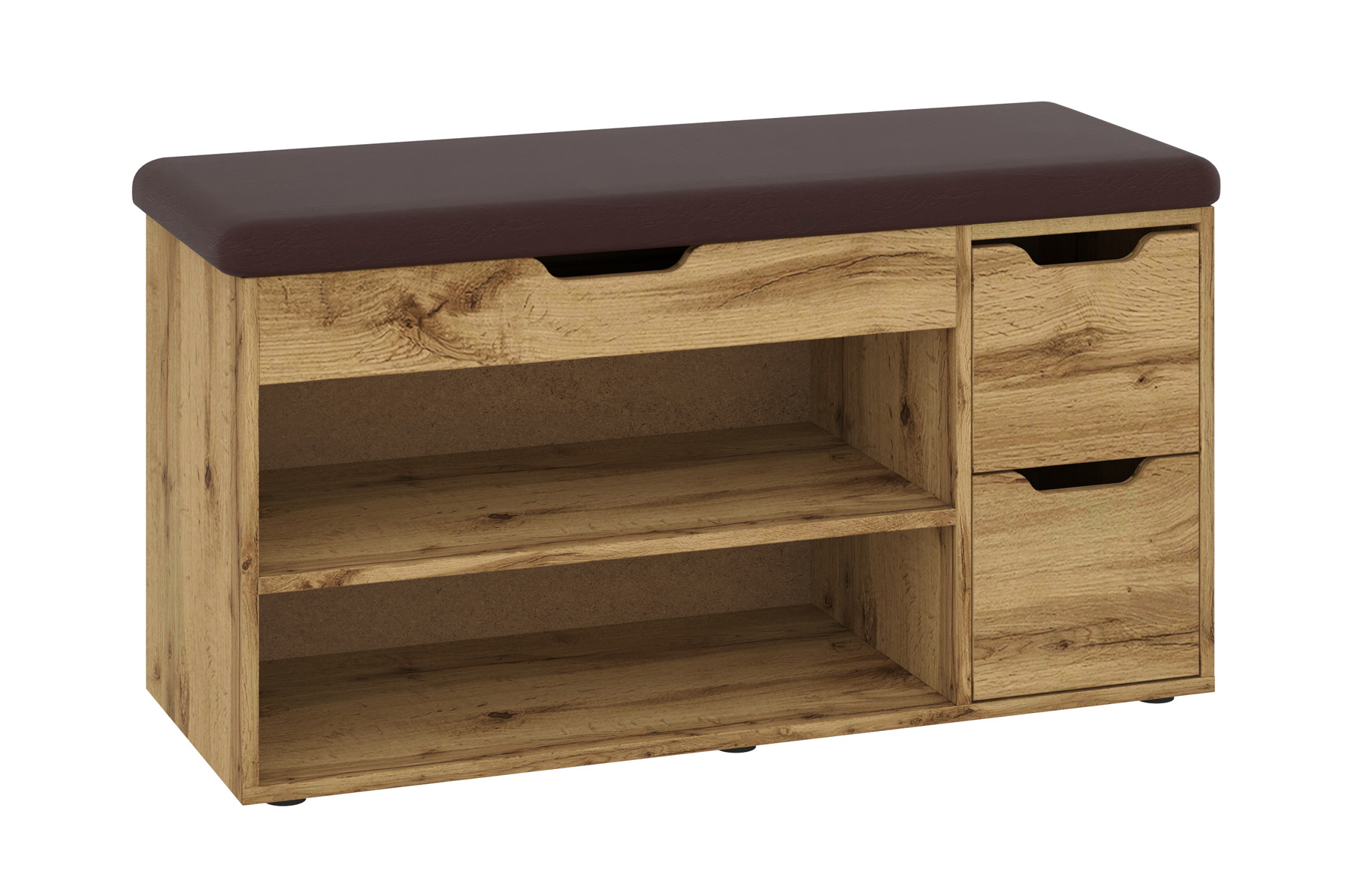 Опис Тумба для взуття з сидінням Quadro (100х38х50 см, сонома + коричневий)