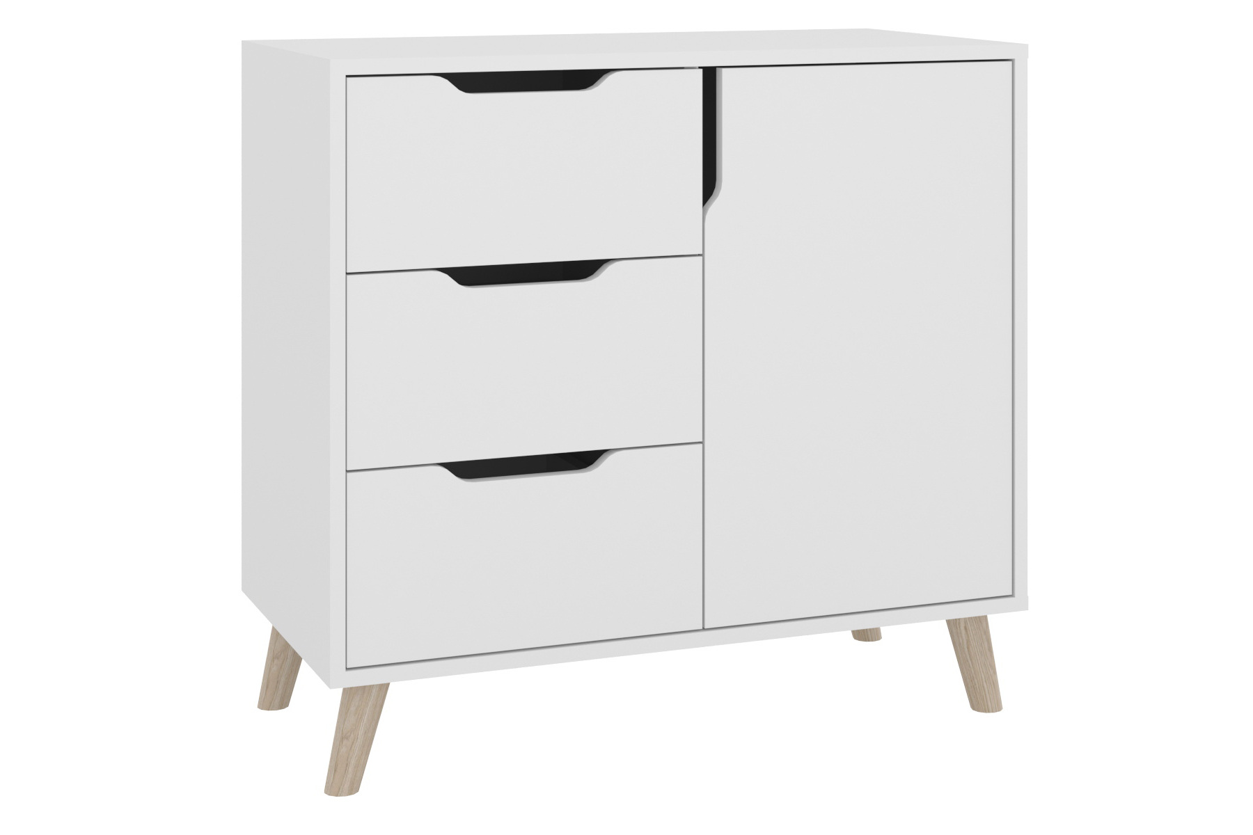 Цей комод оптимально поєднує практичність і елегантність скандинавського дизайну – він має нейтральні світлі кольори та не відволікає на себе зайву увагу від інших елементів інтер'єру. Його можна спокійно використовувати у малогабаритних кімнатах завдяки невеликим розмірам.