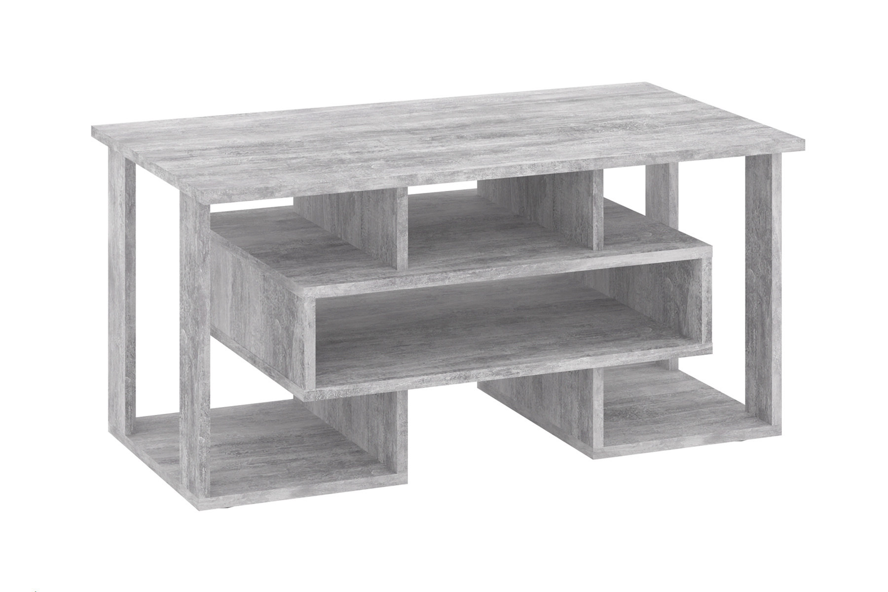 Модель має унікальний дизайн - прямокутної форми з рівними, чистими лініями. ЇЇ спокійно можна використовувати в якості журнального або телевізійного столика. На полицях можна розмістити книги, декоративні елементи або електроніку. Міцні ніжки забезпечують стабільність, а загальний вигляд столика є універсальним і підходить для різних варіантів інтер'єру.