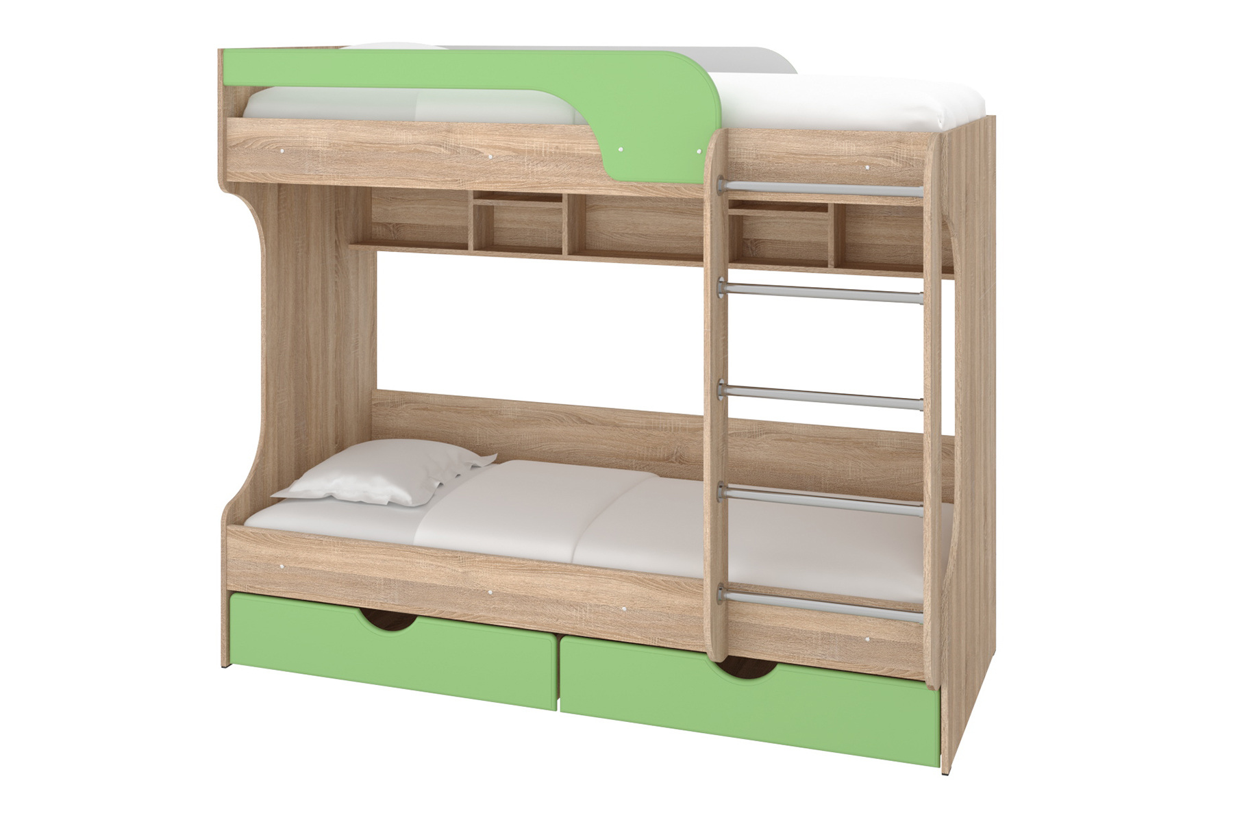 Ліжко двоярусне Planio (193,2х98,6х165,5 см, сонома + фісташка)