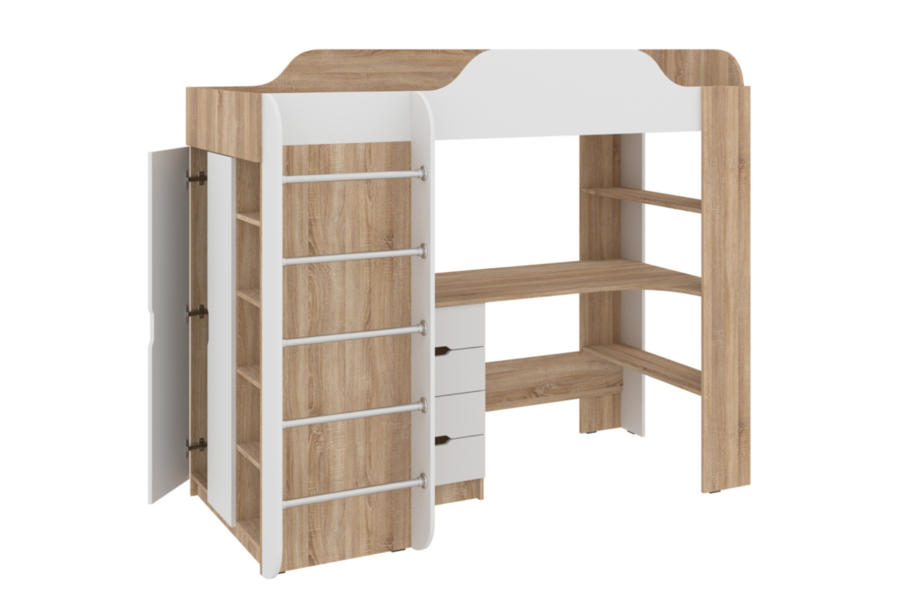 Ліжко двоярусне Solido (195х98,5х166 см, сонома + білий)