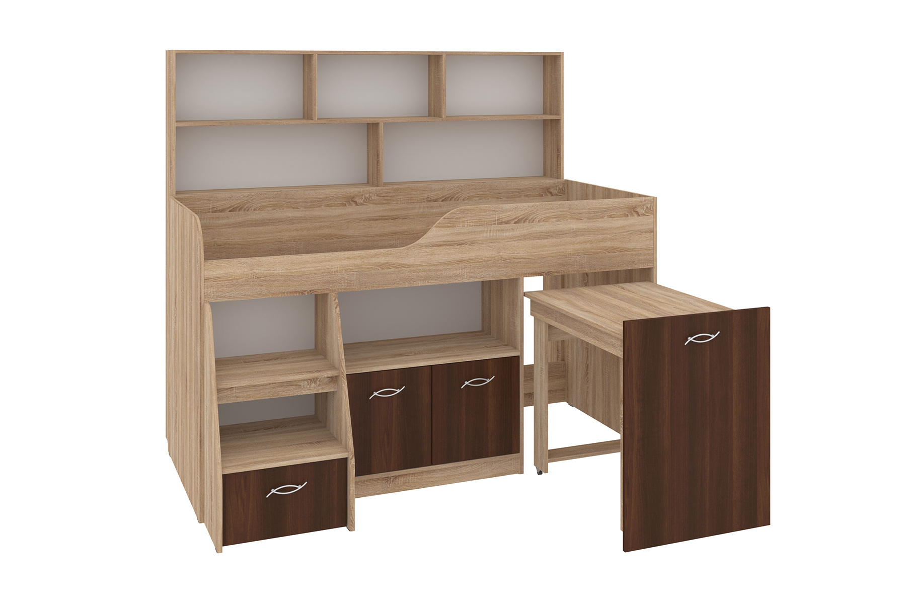 Ліжко двоярусне Puro (193,5х132х173,5 см, сонома + горіх)