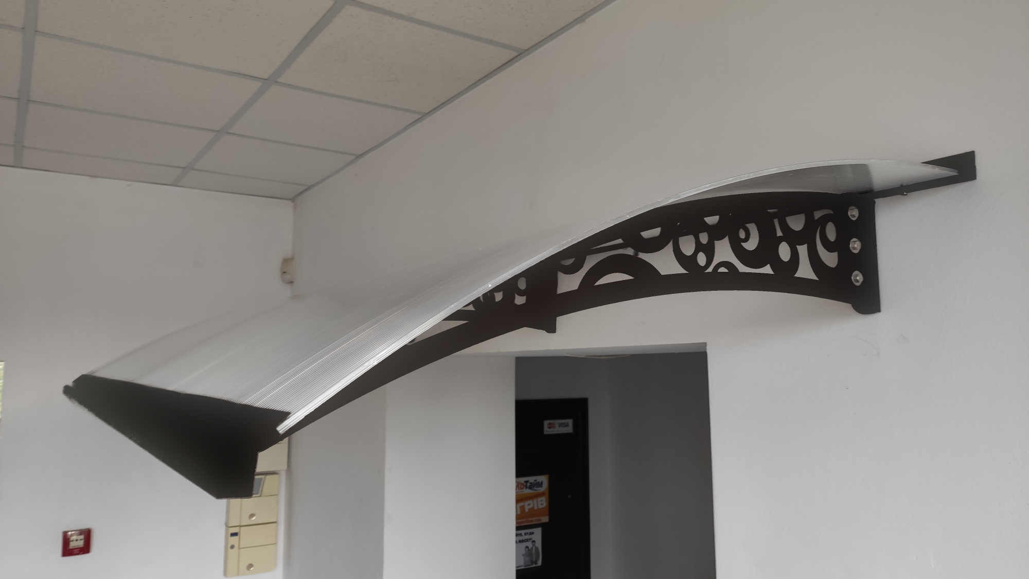 Виготовлений з високоякісного полікарбонату, цей навіс є міцним та стійким до ультрафіолетових променів, що забезпечує тривалий термін служби без вигорання або пошкоджень. Полікарбонат також має високу прозорість, дозволяючи достатньо природного світла проникати до входу.