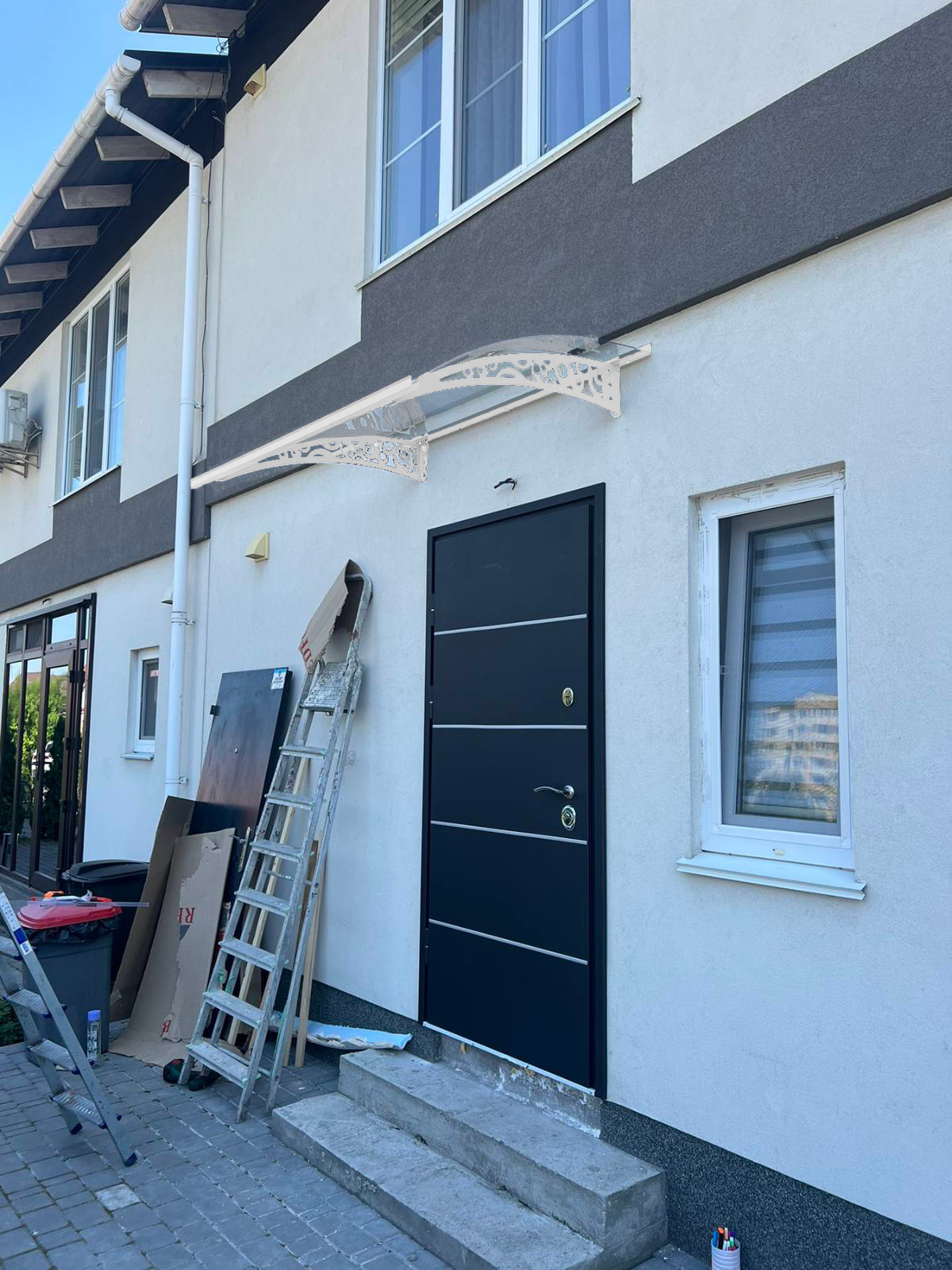 Завдяки своїм розмірам 1.5x1 м, цей навіс ідеально підійде для багатьох типів входів і приведе до гармонійного поєднання з архітектурою будинку.
