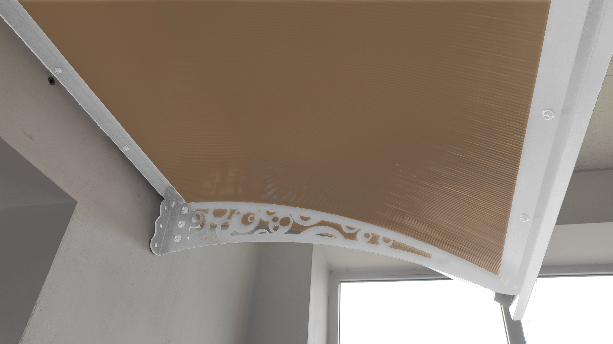 Виготовлений з високоякісного полікарбонату, цей навіс є міцним та стійким до ультрафіолетових променів, що забезпечує тривалий термін служби без вигорання або пошкоджень. Полікарбонат також має високу прозорість, дозволяючи достатньо природного світла проникати до входу.