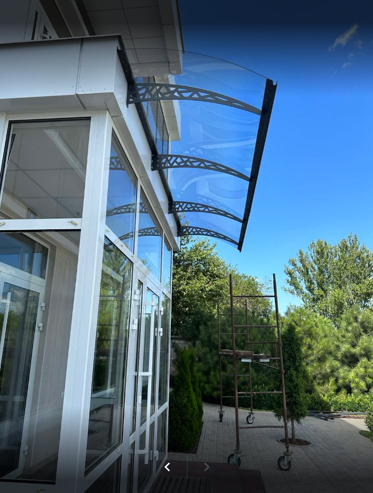Виготовлений з високоякісного полікарбонату, цей навіс є міцним та стійким до ультрафіолетових променів, що забезпечує тривалий термін служби без вигорання або пошкоджень. Полікарбонат також має високу прозорість, дозволяючи достатньо природного світла проникати до входу.