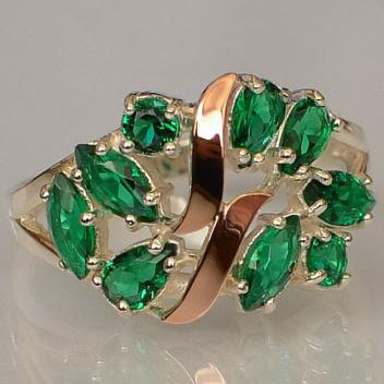 Характеристики товару Серебряное кольцо Sil с золотыми вставками Зеленый (Sil-120)