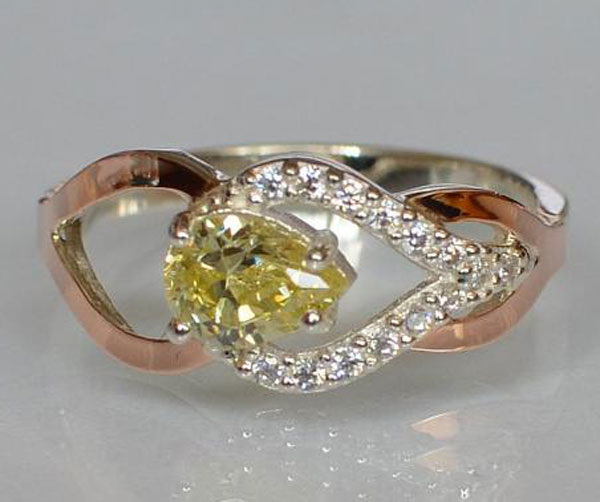 Серебряное кольцо Sil с золотыми вставками Желтый (Sil-129)