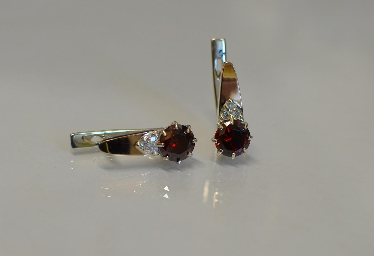 Опис Серебряные серьги Sil с золотыми вставками 124s-4 Гранат (Sil-777)