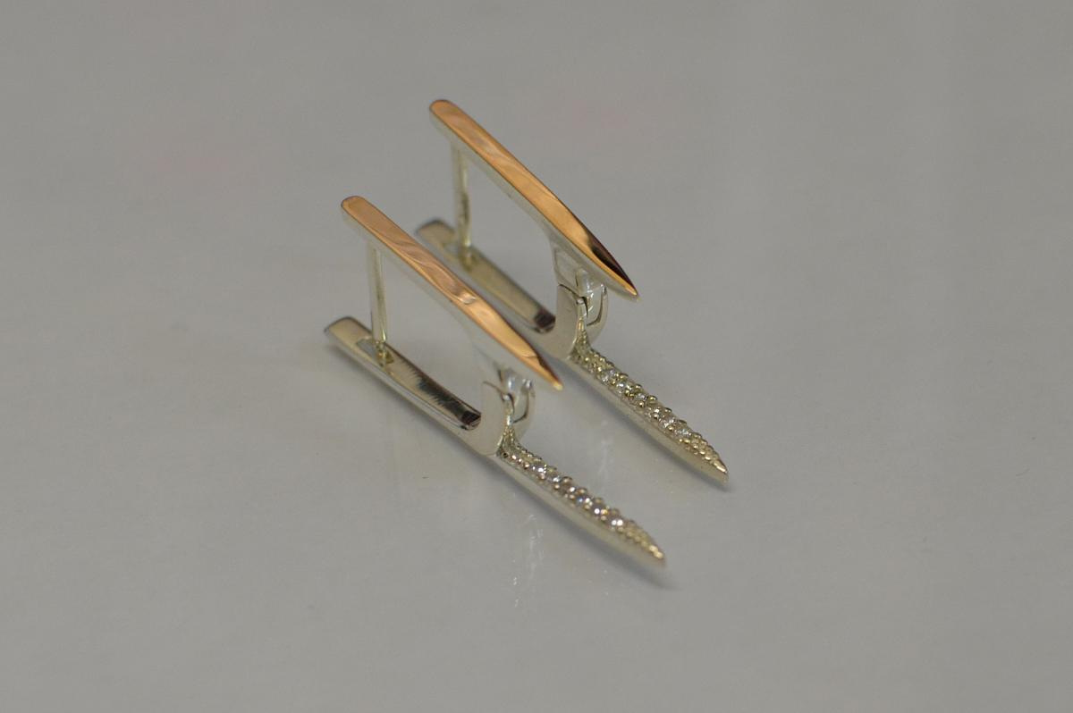 Серебряные серьги Sil с золотыми вставками 142s-10 Розовый (Sil-1137)