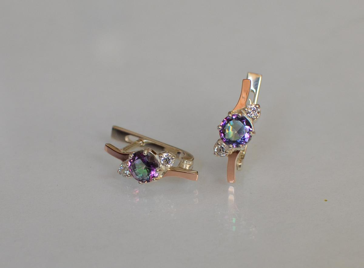 Опис Серебряные серьги Sil с золотыми вставками 134s-7 Мистик (Sil-1194)