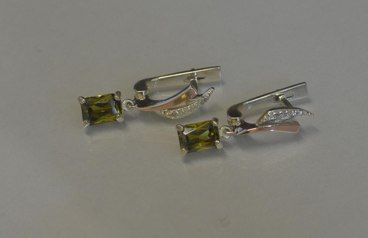 Опис Серьги серебряные Sil с золотыми накладками и фианитами 100s-5 Олива (Sil-1005)