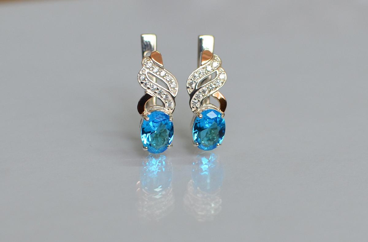Опис Серебряные серьги Sil с золотыми накладками 117s-4 Аквамарин (Sil-762)