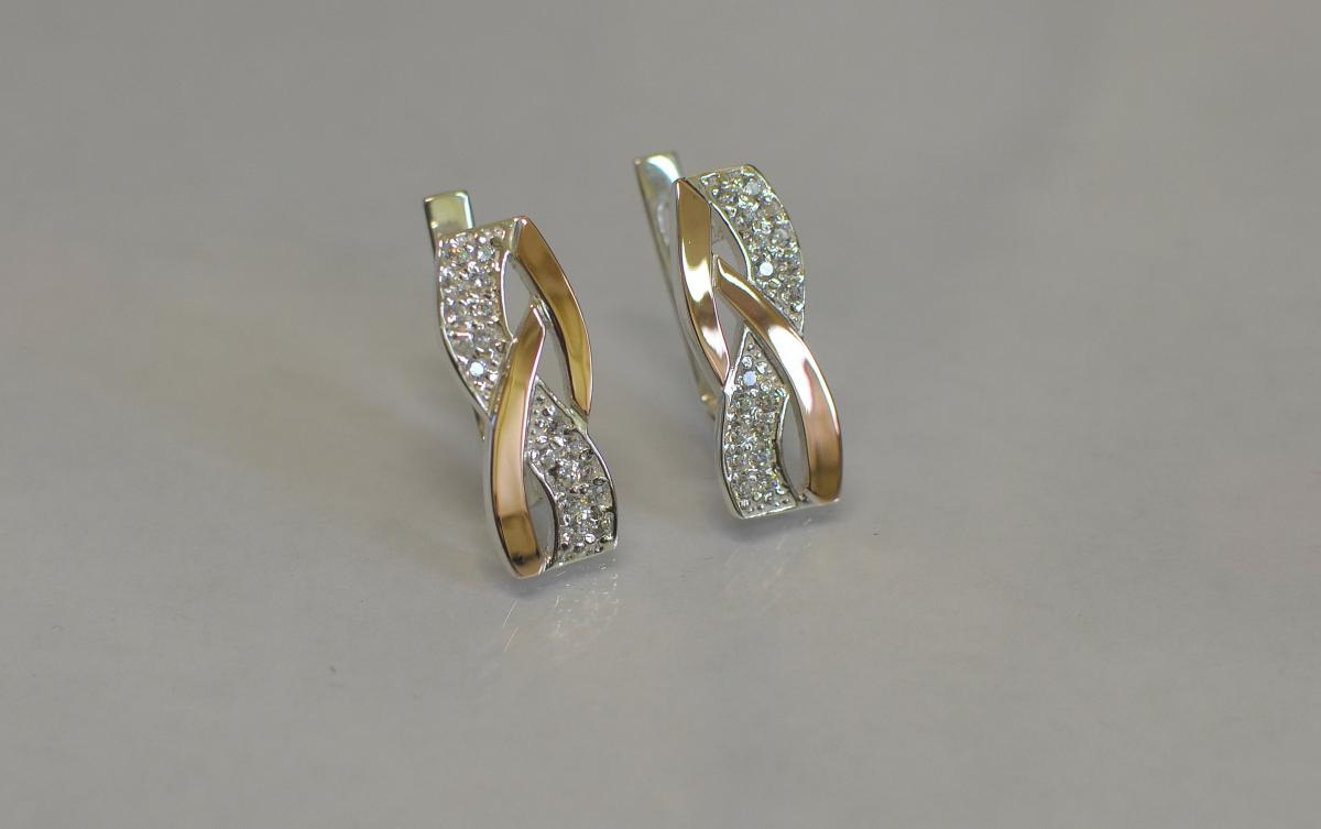 Серебряные серьги Sil с золотыми накладками 139s Прозрачный (Sil-1203)